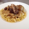 Présenter la viande, la sauce, les oignons grelots, les champignons et les lardons.